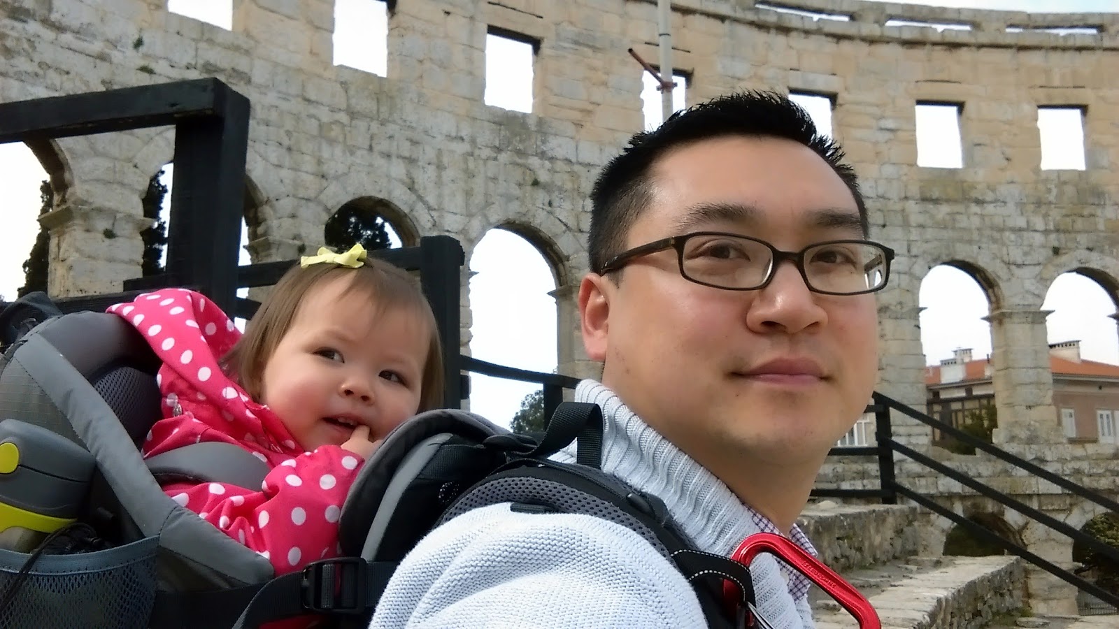 Next we grabbed some drinks in Pula's public square which was once the Roman forum. Brooklyn chased pigeons throughout the square. She picked up every rock and feather she found until she discovered fresh bird poop.